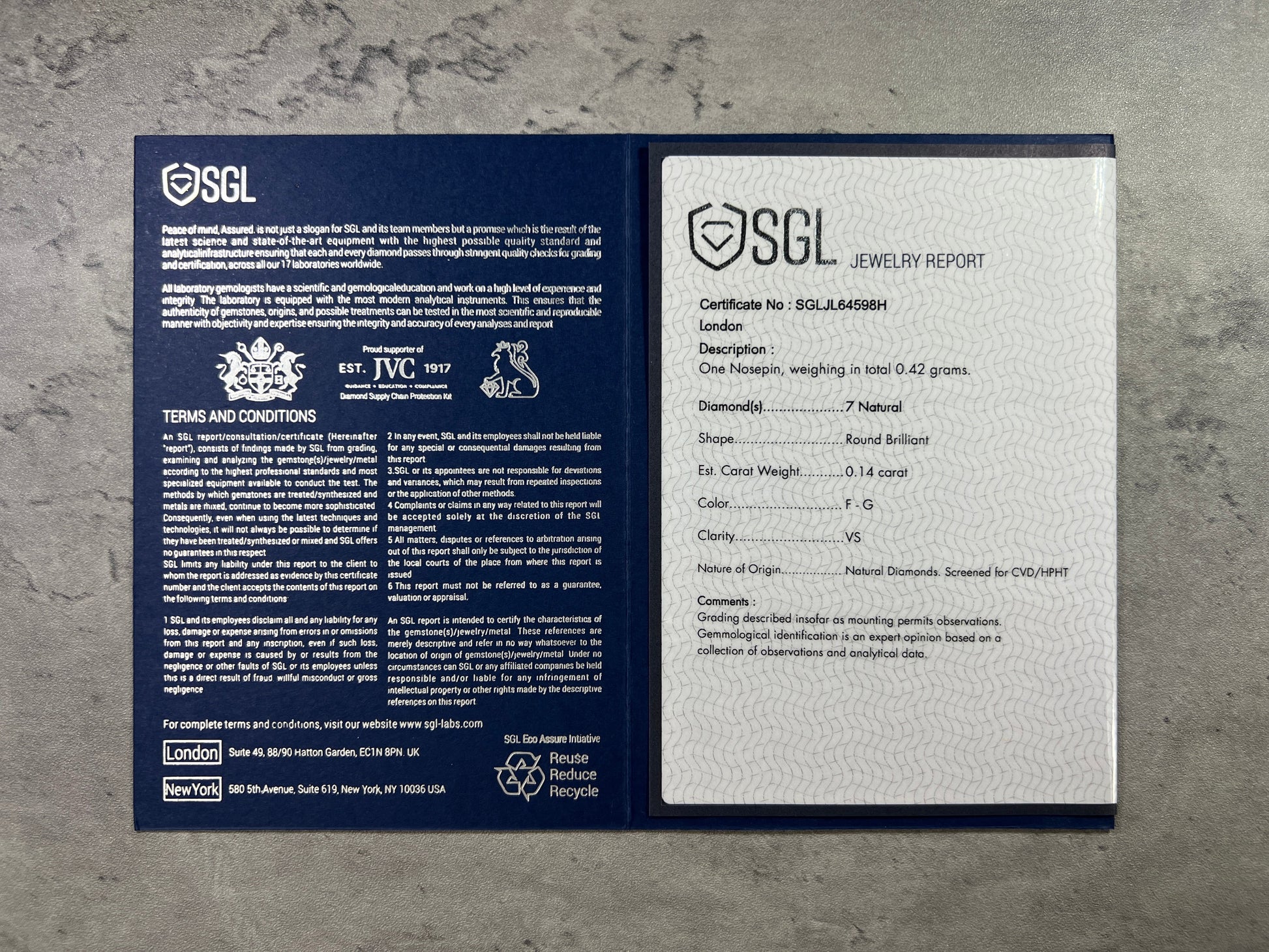 • Colour: F-G, Clarity: VVS (certified)